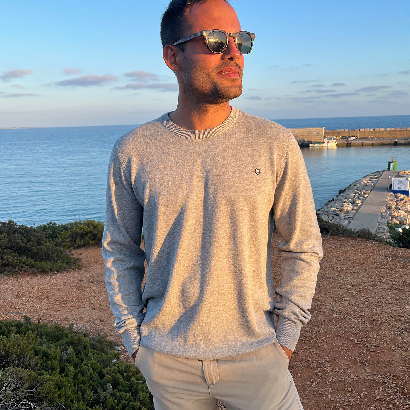 Ramón mide 175 cm. y lleva un jersey talla M